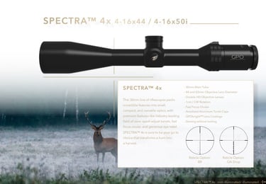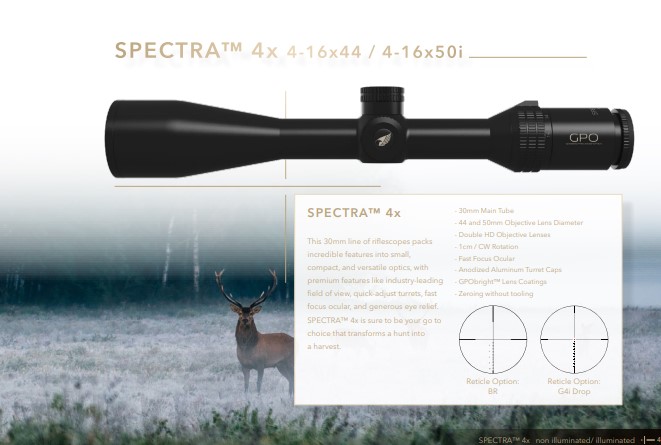 Turbūt sutiksite, kad renkantis optinį taikiklį, reikėtų atkreipti dėmesį, kad geriau rinktis bent 3x priartinimą. Tad išrinkom modelius, kurie turi ne mažesnį priartinimą. Vieni įdomesnių būtų šių klasių modeliai: Spectra 4x, Spectra 5x, Spectra 6x, Spectra 8x, Passion 4x, Passion 5x, Passion 6x, Passion 8x. Kitaip sakant 4, 5, 6 ir 8 klasės Spectra ir Passion GPO optinių taikiklių serijose.
