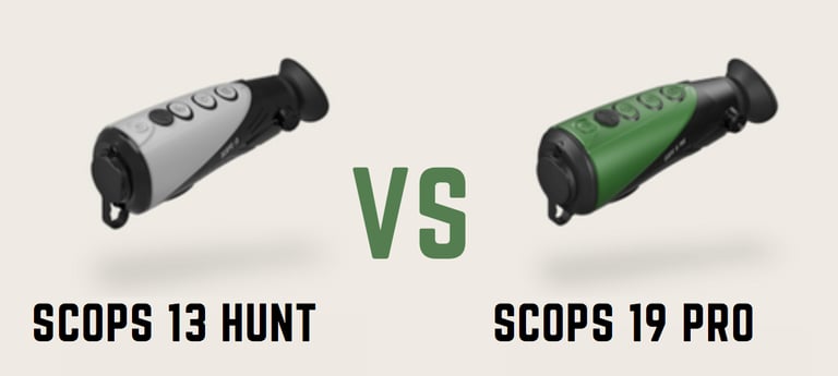 Abu termovizoriai yra vienodo dydžio, bet Scops 19 PRO yra vos sunkesnis (350 gr). Jo objektyvas yra didesnis – 19mm, didesnė –384x288 px – matrica suteikia galimybę stebėti ir didesnį matymo lauką - 19,5° x 14,7°- ir aptikiti iš didesnio - iki 696m - atstumo. Medžiojant iš bokštelio tai tieisog lygių neturintys naktinės medžioklės pagalbininkai.