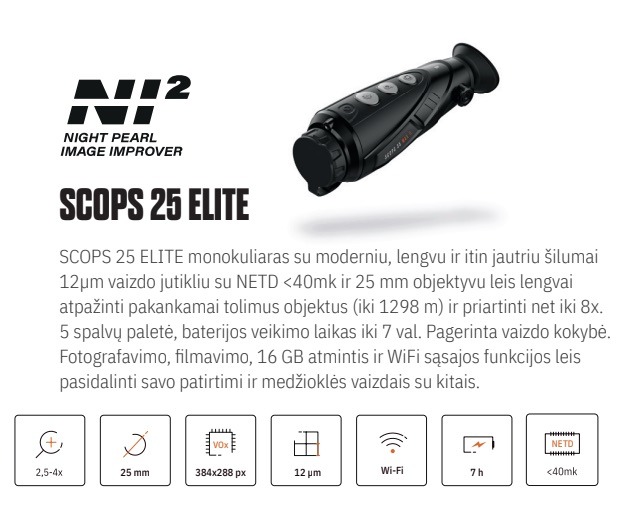 NI2 programa tai: atnaujinta „VOx“ (Vanadium Oxide) šiluminio jutiklio technologija idealiai perteikianti vaizdą. Visiškoje tamsoje vaizdus užfiksuoja itin detaliai. Naujoji lengva ir itin jautri 12 μm jutiklio matrica.