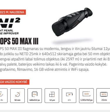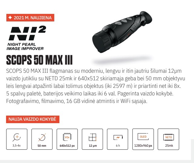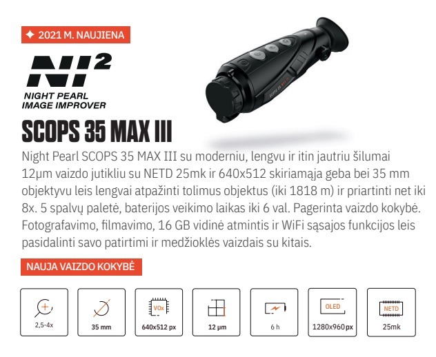 Night Pearl termovizorių modeliai su atnaujinta NI2 vaizdo gerinimo programa